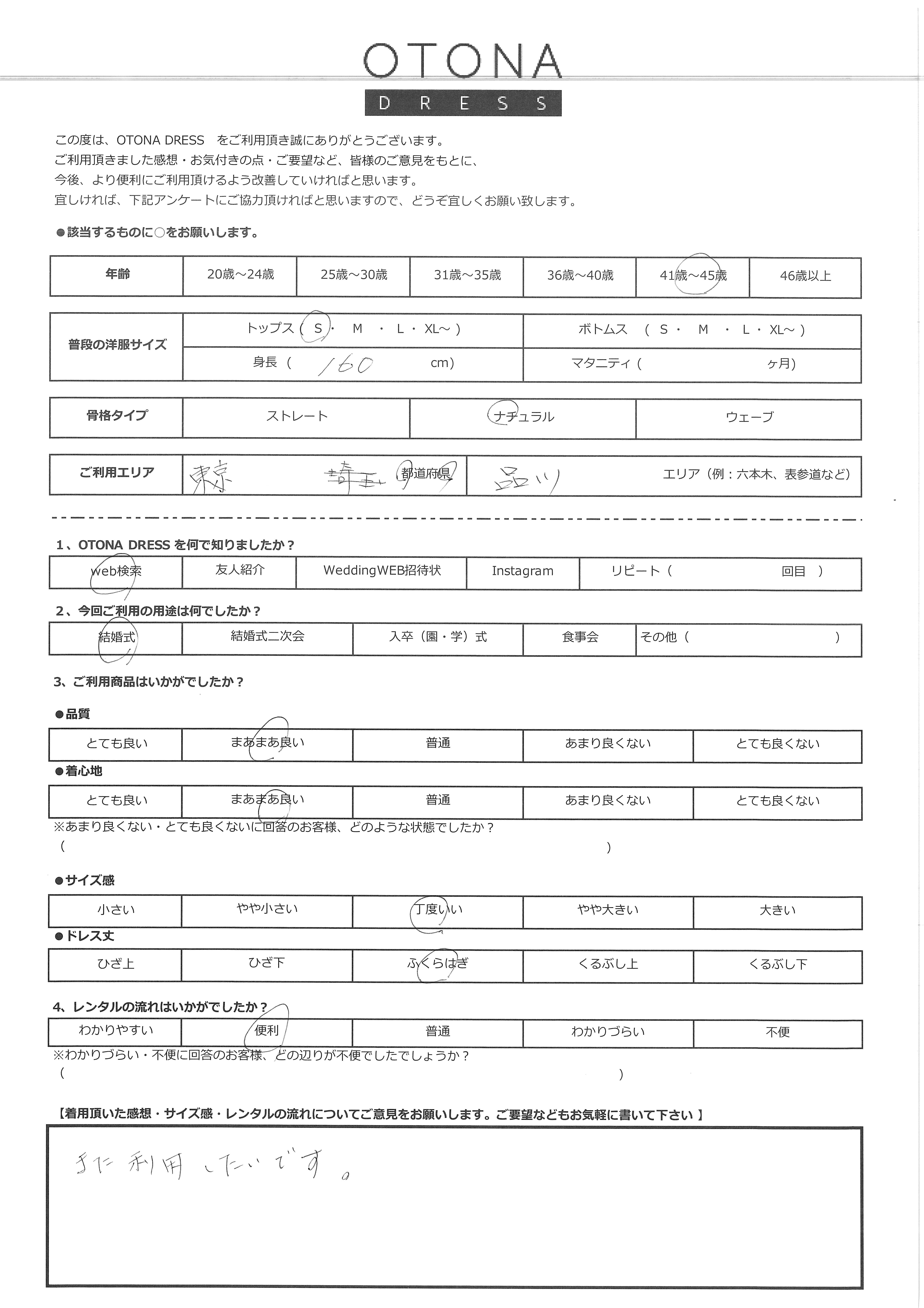 この度はお世話になりました。2日前到着とのことでサイズが合うか不安でしたが何とか着れて当日を迎えることができました。私には上が少し小さめ、下がウエストが少し大きめでした。着心地はよかったです。ありがと...
