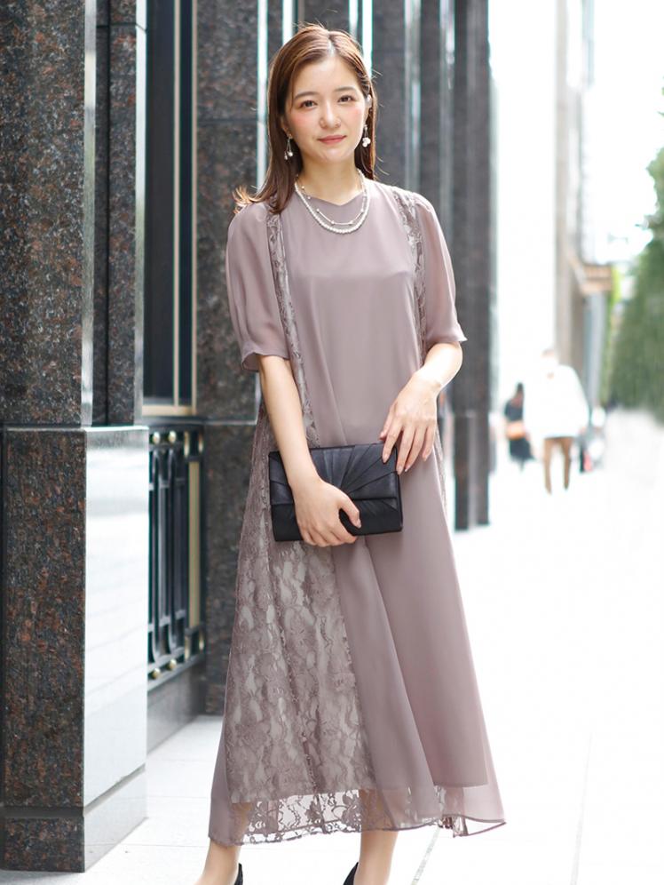 サイドレースAラインリボン付ドレス(グレージュ)CR1-411GRE-M